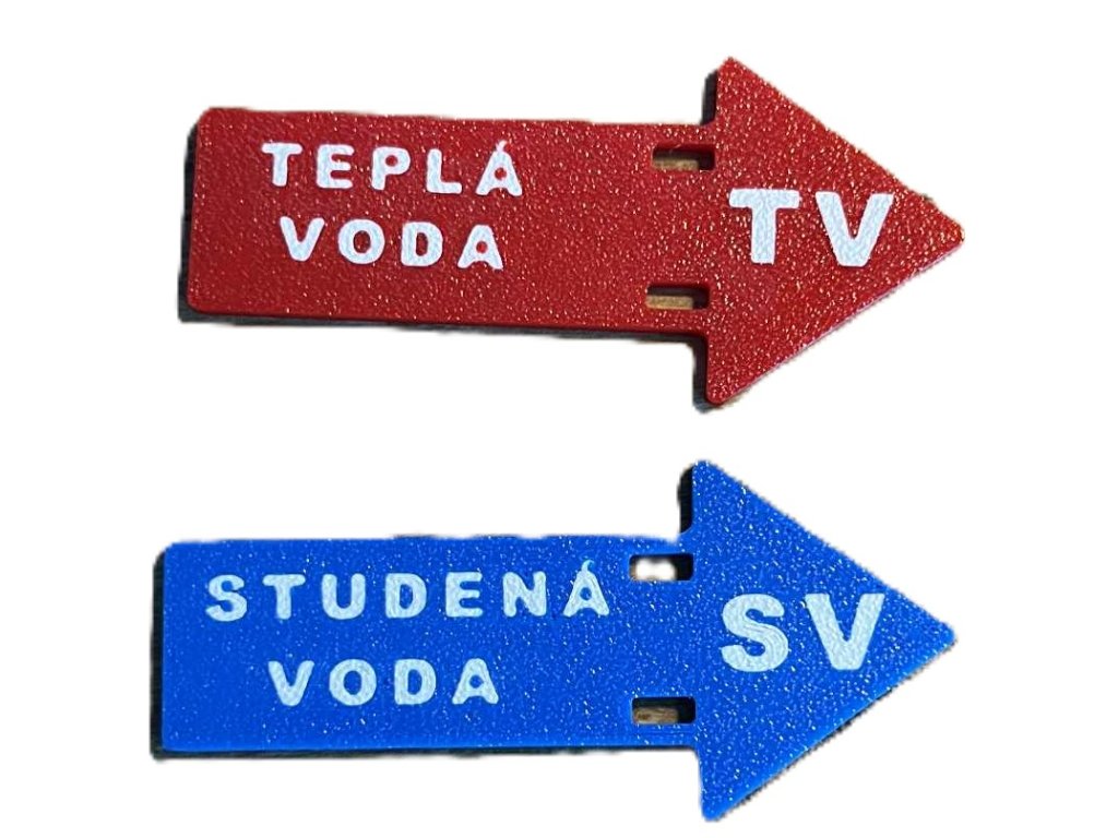 Štítek na rozvody potrubí, aby jste věděli co kam vede. Do poznámky napište požadovaný text.